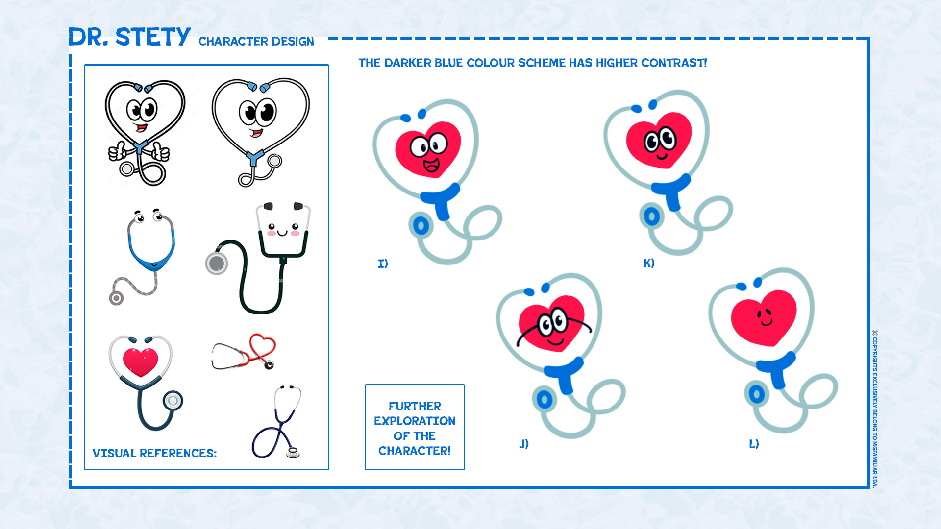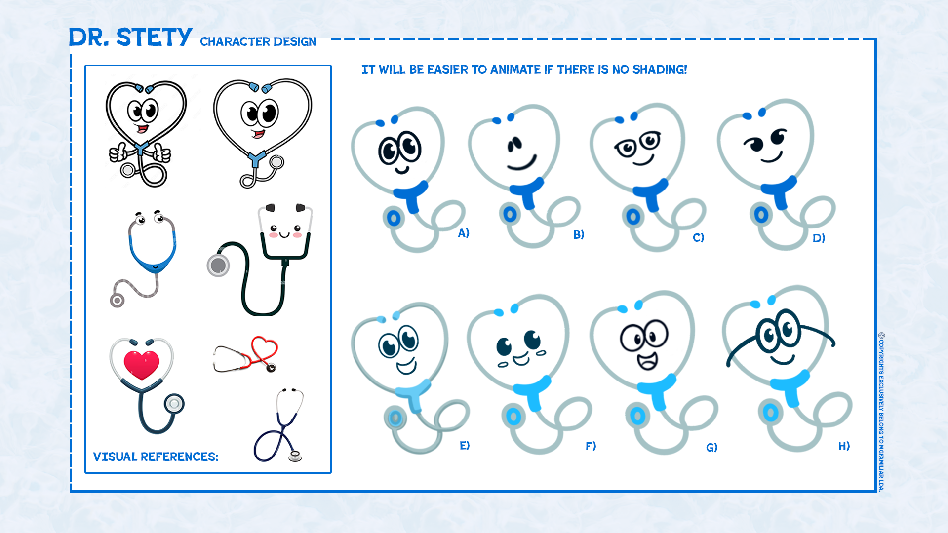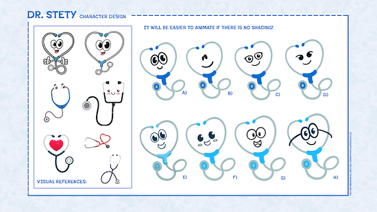 The multiple themes would be presented by Dr. Stety, an animated stethoscope that would narrate and guide the audience through the concept's factual medical information.