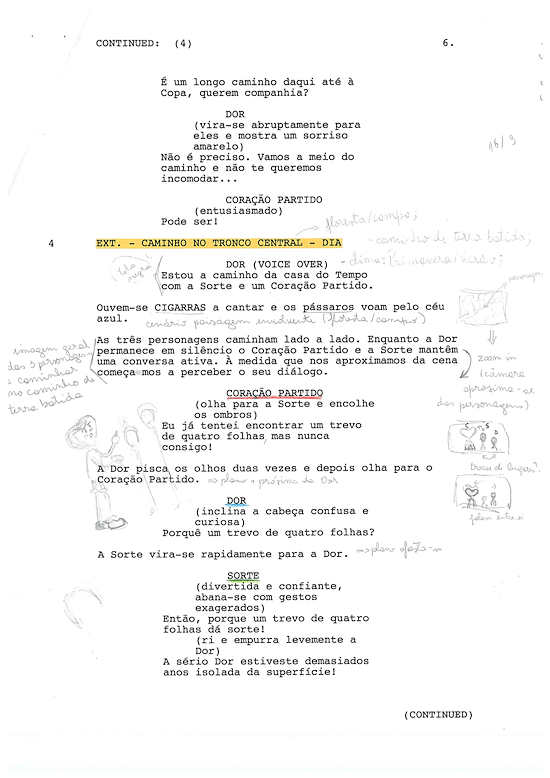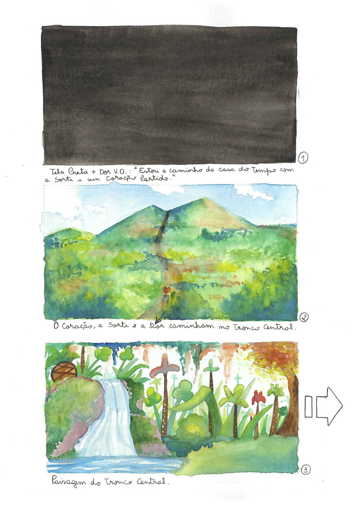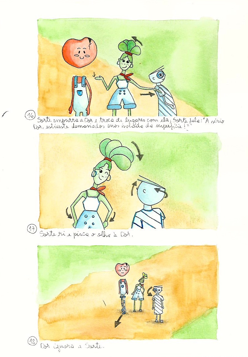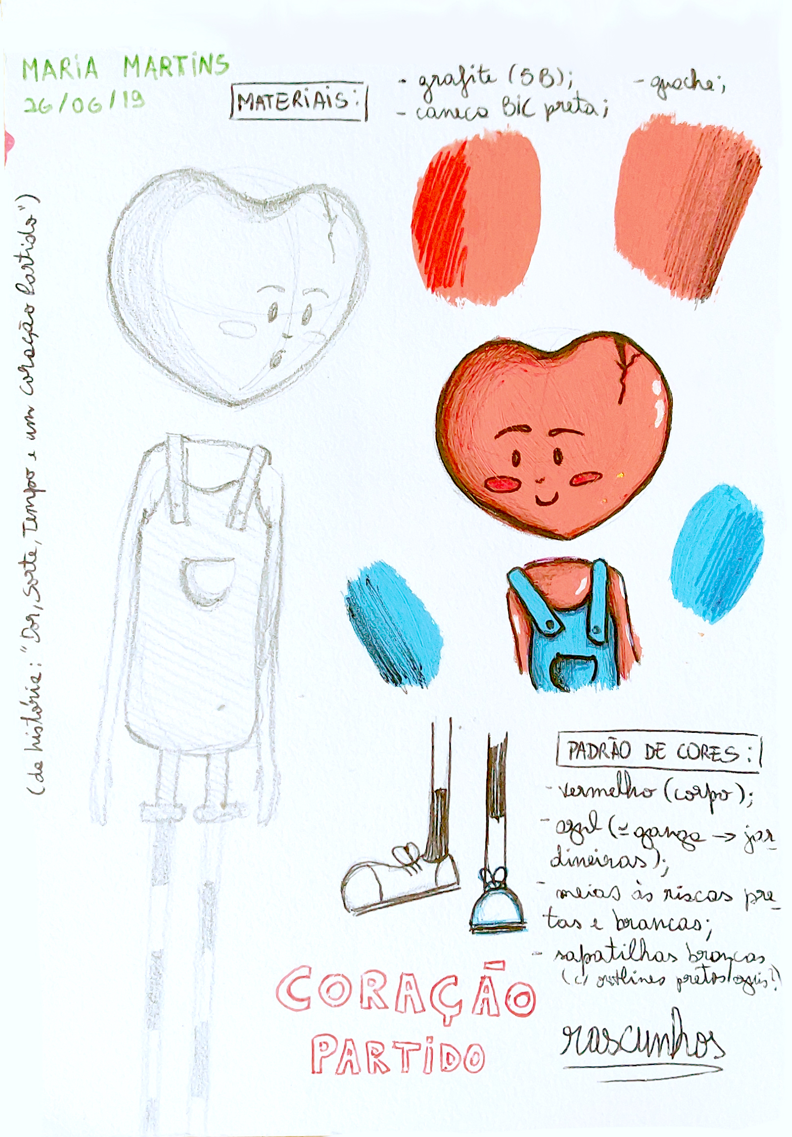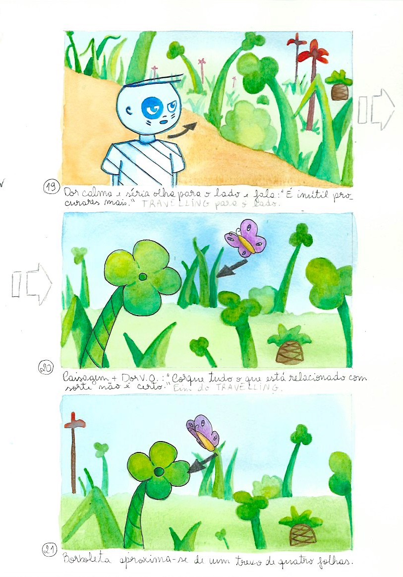 Dor, Sorte, Tempo e um Coração Partido (translated into Pain, Luck, Time and a Broken Heart) is a project that involves the pre-production of a short animation project through an original script, character design and painted storyboard of a selected scene.
