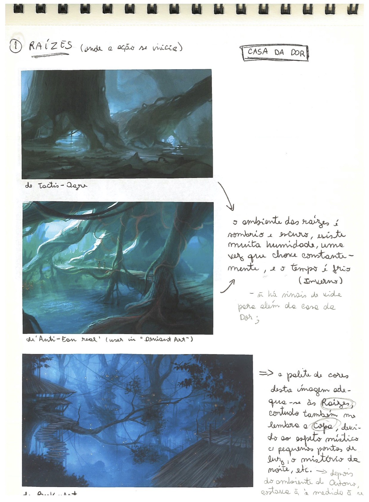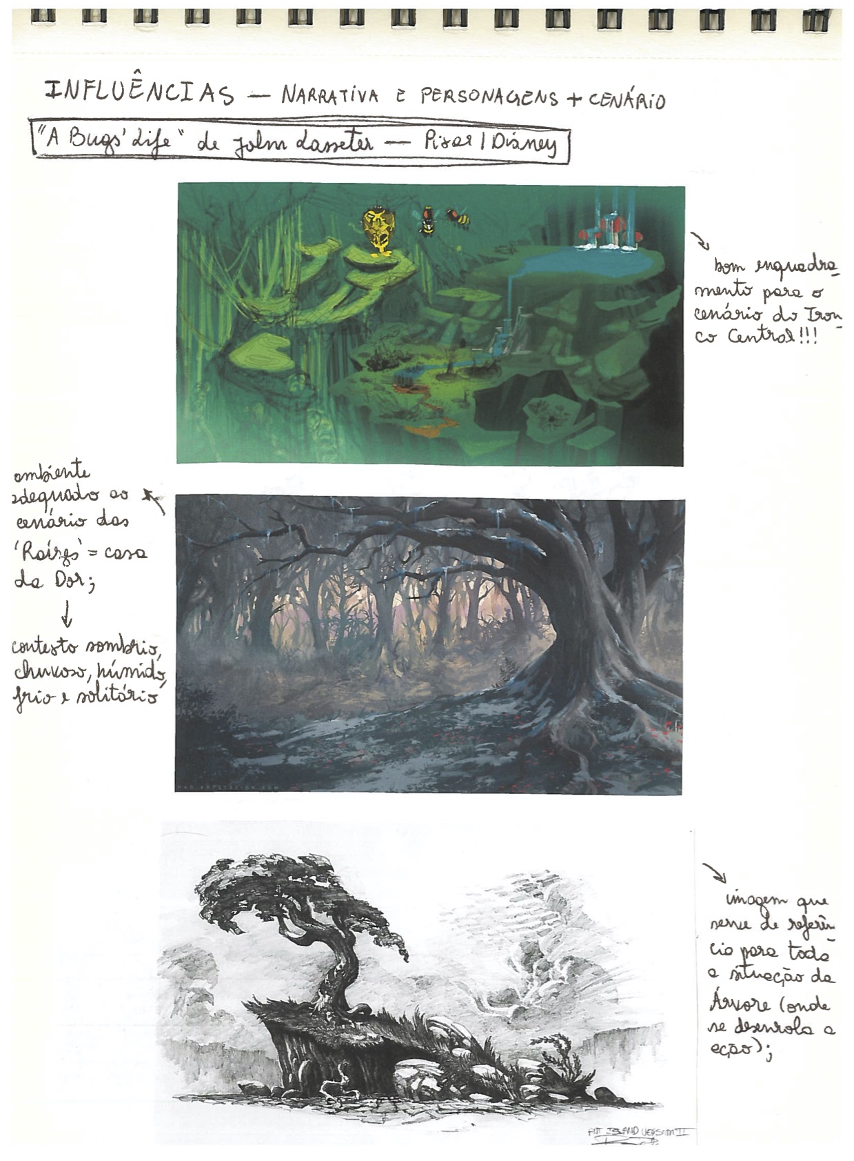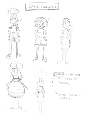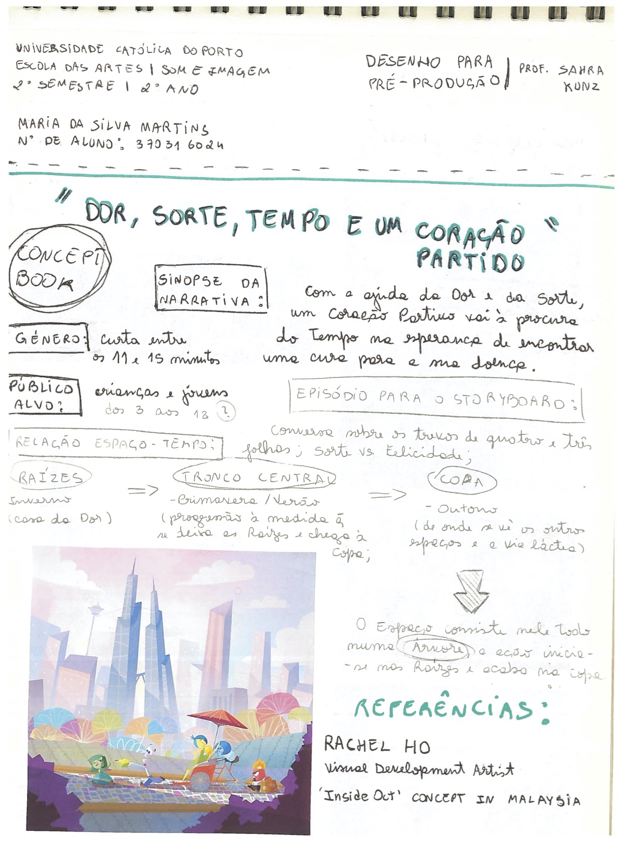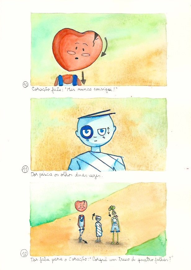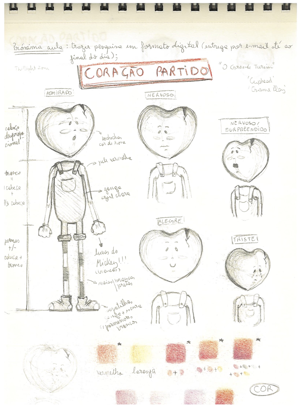 Dor, Sorte, Tempo e um Coração Partido (translated into Pain, Luck, Time and a Broken Heart) is a project that involves the pre-production of a short animation project through an original script, character design and painted storyboard of a selected scene.